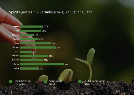 Bu, üretkenliği artırmak, maliyetleri azaltmak ve tarım ürünlerinin çevre dostu olmasını artırmak için modern bir çözümdür. SpiritT, sadece bitkiler için değil, insanlar için de çok önemli olan fulvik ve hümik asitlerin miktarını artıran turbadan yapılır. Nötr Ph ve redoks potansiyeline sahiptir, toprak, bitki ve hayvanlar üzerinde faydalı bir etkiye sahiptir.